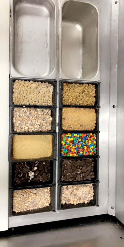 As of 2019 – 2020, I was working part time while I was in school. Thus, I applied my time management skills very well. As I got older, I had to bear with more responsibilities. While frozen is very slow, our assistant managers tell us to “Flip Frozen” thus translated as to clean frozen, as if all the candy crumbs were to cleaned up in between each candy container. And to wipe down the splatted ice cream when blending shakes and soft serve ice cream; thus, counting as a duty at work.